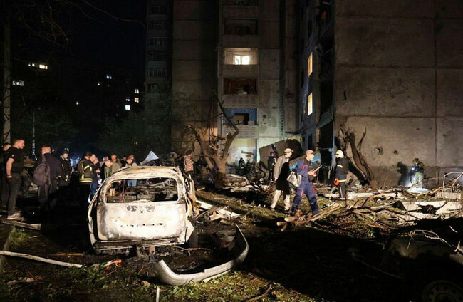 Regional leader Oleg Synegubov said two people were in critical condition. He said dozens of residents were asleep when the building was struck.