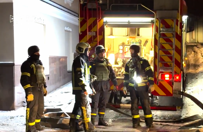 Emergency services working in Kyiv in the early hours of this morning. Ukraine State Emergency Service