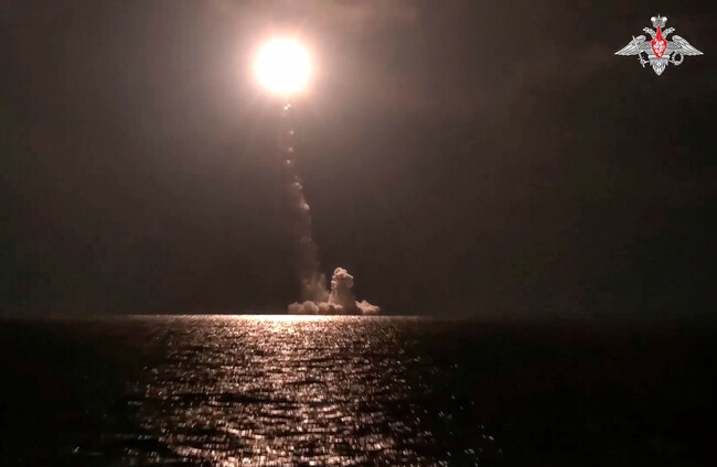 The Russian navy test-fires an intercontinental ballistic missile Russian Defense Ministry Press Service via AP