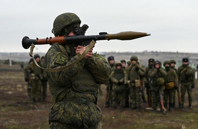 A grenade launcher operator of the Russian armed forces takes part in combat drills at the Kadamovsky range in the Rostov region. REUTERS/Sergey Pivovarov via Alamy