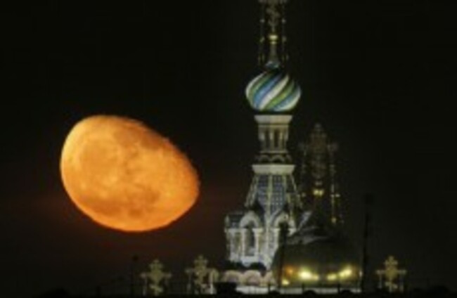 The moon rises above the Savior of Spilled Blood Cathedral in downtown St.Petersburg, Russia Dmitry Lovetsky/AP/Press Association Images