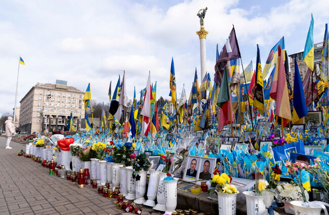 A memorial recently set up in Kyiv for the soldiers and civilians who have died in the war. Alamy