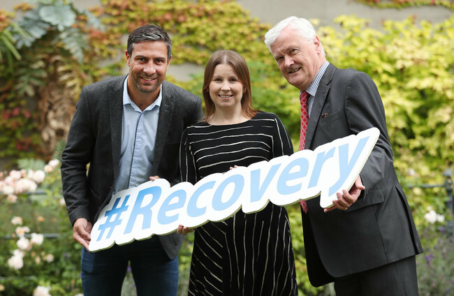 Kenny Egan with Maebh Mullany and Dr John O'Connor at the launch of recovery month. Robbie Reynolds