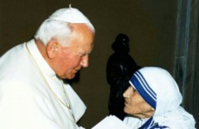 Pope John Paul II greeting Mother Teresa of Calcutta in 1997. (AP Photo/Arturo Mari/HO)