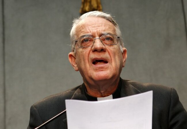 Vatican spokesman Rev. Federico Lombardi makes the announcement during a press conference at the Vatican today. (AP Photo/Riccardo De Luca)