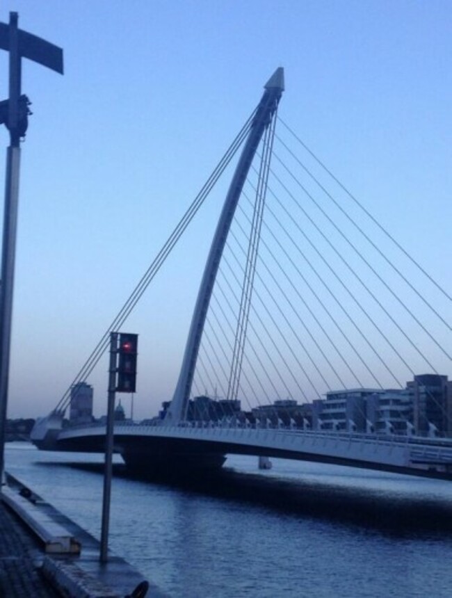 The Samuel Beckett Bridge. Closed to traffic earlier (but open to shipping). Karen Ferris via Twitter