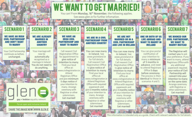 Now registration begins, but those who have already given notice for a civil partnership will be able to marry instead if they want to. Any same-sex couples who got married abroad will automatically have their marriages recognised in Ireland.