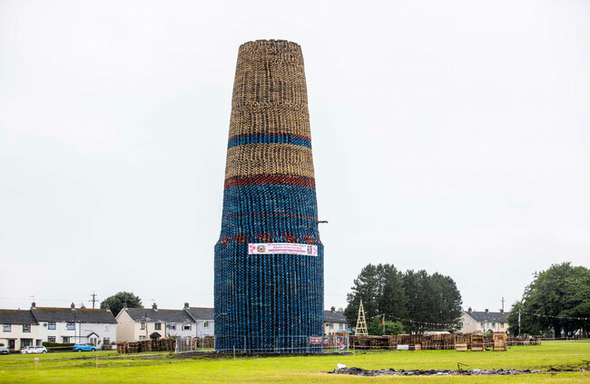The Craigyhill bonfire in Larne pictured on 4 July. Alamy Stock Photo