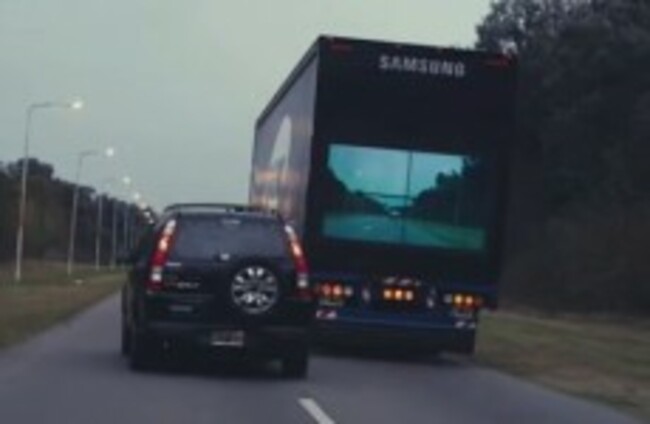 Last week, the electronics company shared a blog post about its Safety Truck – a trailer-truck that has a wireless camera in the front and four giant screens on the back to display its front view to cars behind it.