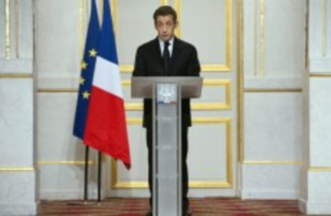 French President Nicolas Sarkozy, photographed in Paris on Saturday. AP Photo/Lionel Bonaventure, Pool