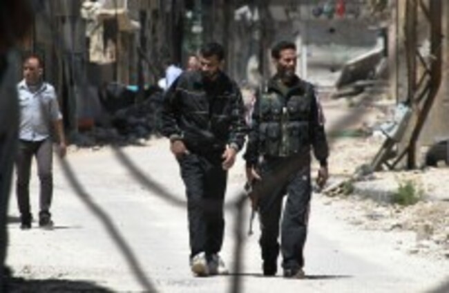 Free Syrian Army fighters walk on street in Khaldiyeh neighborhood in Homs, Syria AP Photo