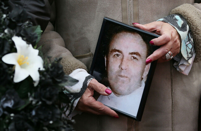 Marie Lynskey holds a photograph of her uncle Joe Lynskey, one of the Disappeared. Alamy Stock Photo