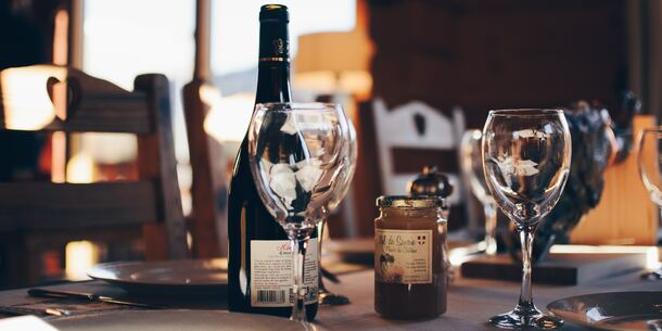 At home with dinner and a few glasses of wine