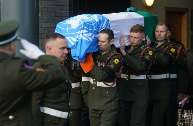 Members of the Defence Forces carry Sean Rooney's coffin during his funeral in Louth last year. PA Images/Alamy Stock Photo