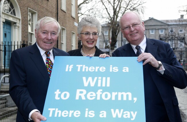 Then senators Feargal Quinn and Katherine Zappone with Michael McDowell SC at the launch of a blueprint for action to reform Seanad Eireann in January 2014. RollingNews.ie