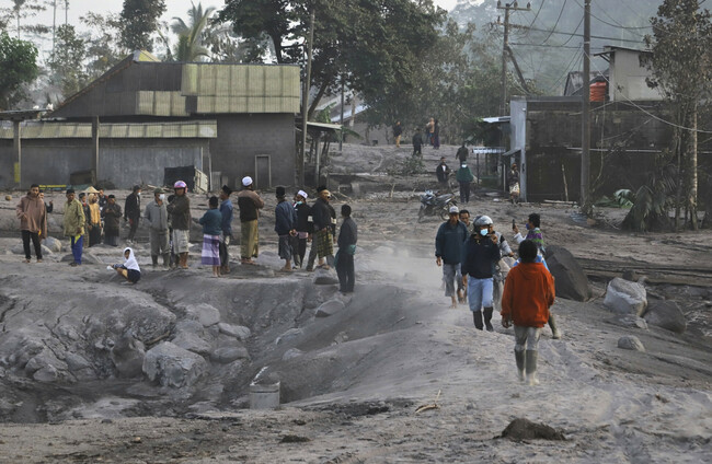 People inspect their ash-covered village following the eruption of Mount Semeru in Lumajang, East Java, Indonesia Imanuel Yoga/PA Images