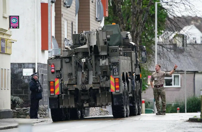 A military vehicle at the scene near St Michael Avenue, Plymouth (Ben Birchall/PA).