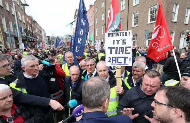 Bus Eireann staff and supporters at a protest outside Leinster House on Wednesday Sam Boal/RollingNews.ie