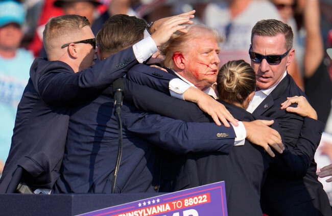 Secret Service members shield Donald Trump after he was shot at in Pennsylvania. PA