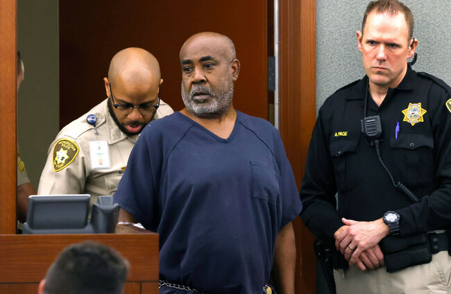 Duane ‘Keffe D’ Davis is led into the courtroom Bizuayehu Tesfaye/Las Vegas Review-Journal via AP, Pool
