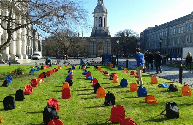 THE BACKPACKS STREWN around the front square of Trinity College Dublin yesterday were not left there by students hurrying to class or standing nearby with friends.