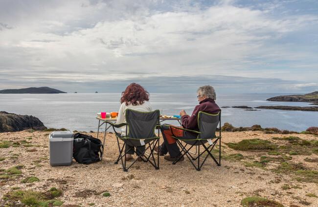 Holidaymakers Martine Vandeveegaete and Andre Derval from Lessines in Belgium having an afternoon picnic with a view of Beara's Wild Atlantic Way on 11 September Alamy Stock Photo