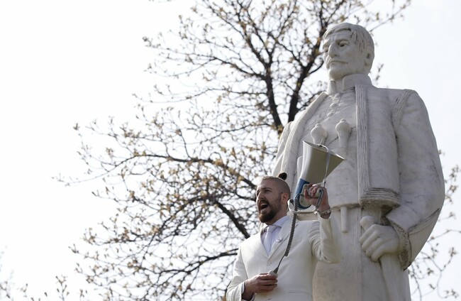 His campaign video (above) shows him dressed in white, riding a white horse and hailing fans while standing in an outdated open-top Mercedes. It’s been viewed more than 750,000 times in its first week