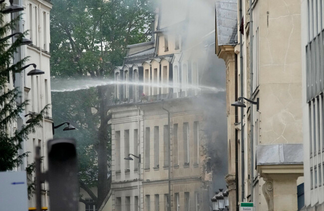 The blast was followed by a major fire which caused the building, housing a fashion school, to collapse in a historic district of the French capital.