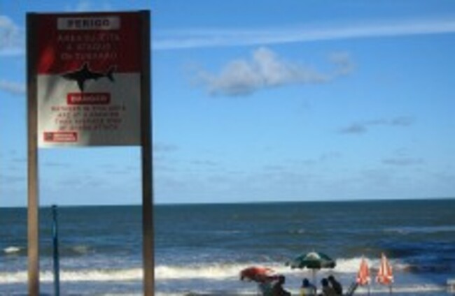 A sign at a beach in Ricife, Brazil, warning swimmers about the dangers of shark attacks. Nicola Brunetto via Flickr