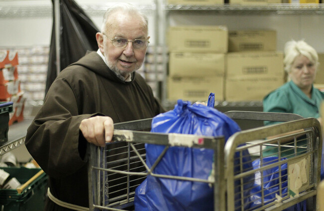 Brother Kevin Crowley, who died in the early hours of this morning, pictured in 2010 organising food parcels at the Capuchin Day Centre. PA