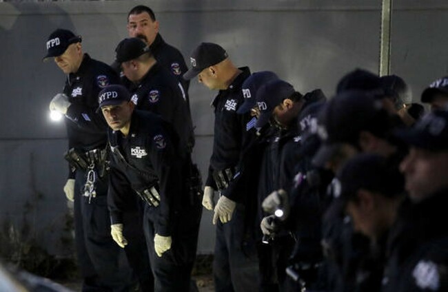 ADDITION Officers Shot-NYPD New York City Police Officers gather at a shooting scene in the Bronx borough of New York. AP Photo / Julio Cortez AP Photo / Julio Cortez / Julio Cortez