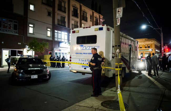 Police secure a perimeter around the scene of a mass shooting in Toronto. Christopher Katsarov/PA Images