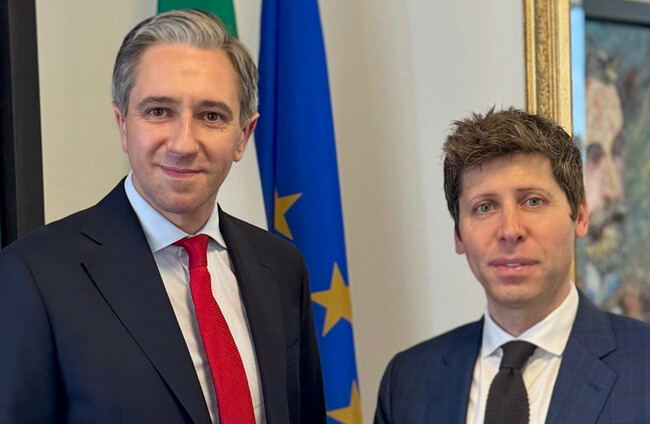 Taoiseach Simon Harris (left) and OpenAI founder Sam Altman (right).