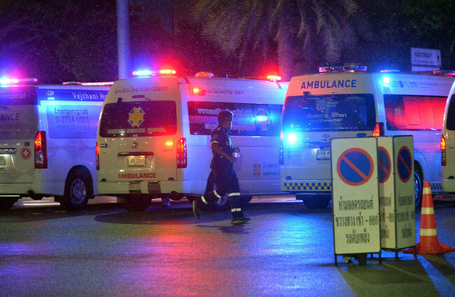 Ambulances wait to carry passengers after a Singapore Airlines was forced into an emergency landing after severe turbulence, 21 May, 2024 Alamy Stock Photo