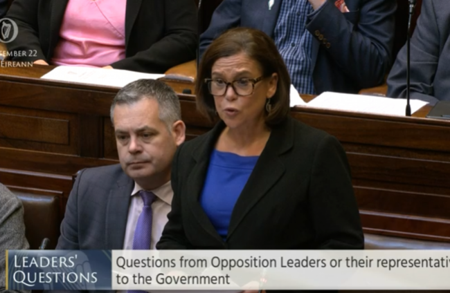 Sinn Féin leader Mary Lou McDonald during this afternoon's Leaders' Questions.