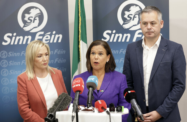 Mary Lou McDonald with Michelle O'Neill and Pearce Doherty Leah Farrell