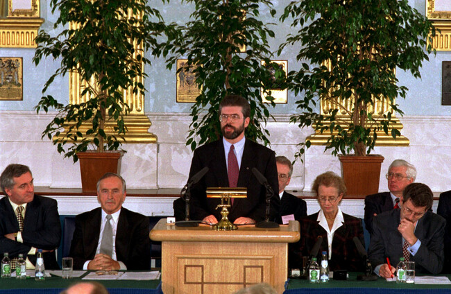 Sinn Féin President Gerry Adams addresses the Forum for Peace and Reconciliation in Dublin Castle,1994. Eamonn Farrell via RollingNews.ie