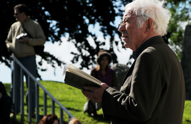 Nobel Laureate Seamus Heaney poet, reading at the 3rd Feis Teamhra at the Hill of Tara. Alamy Stock Photo