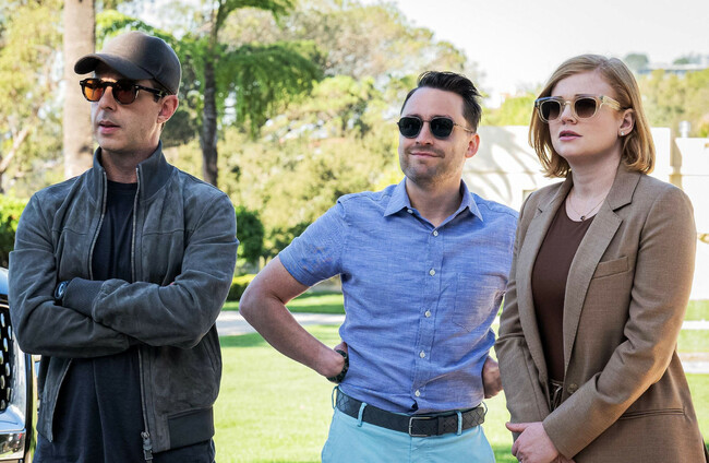 Kieran Culkin, Sarah Snook and Jeremy Strong in the HBO series Succession. Alamy Stock Photo