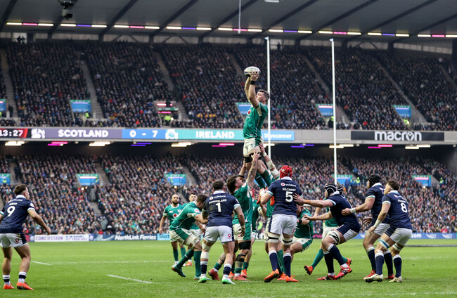 Action from the 2025 Six Nations clash between Ireland and Scotland. Dan Sheridan/INPHO