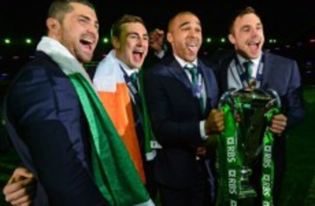Ireland celebrate after they win the Six Nations at Murrayfield Stadium at the end of the 2015 RBS Six Nations match at the BT Murrayfield Stadium, Edinburgh PA Wire/Press Association Images