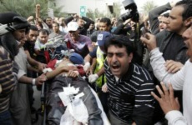 A Bahraini anti-government protester is injured in demonstrations today. AP Photo/Hassan Ammar