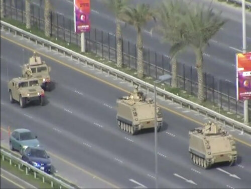 Tanks also appeared on the streets, as police pushed demonstrators from their Pearl Square encampment.