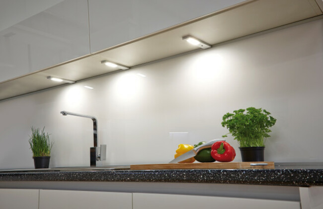 There’s plenty of scope to be creative with the lighting itself, too. “You can introduce a glass feature cabinet with some cabinet lighting, that will give it a lift. You can have plinth lighting for your kickboard, or under-cabinet lights for the worktop.”