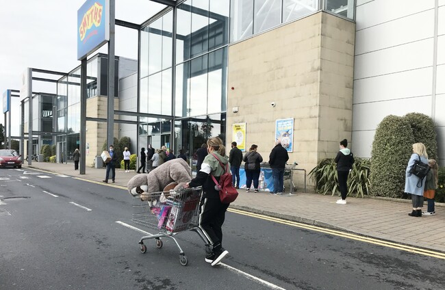 Shoppers queue outside Smyths Toy Store in Naas, County Kildare as fear that the country is about to enter a Level 5. Eamonn Farrell via RollingNews.ie