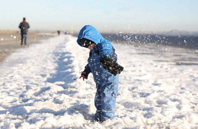 Senan O'Neill, age 3, playing in the snow on Dollymount Strand last month. Leah Farrell