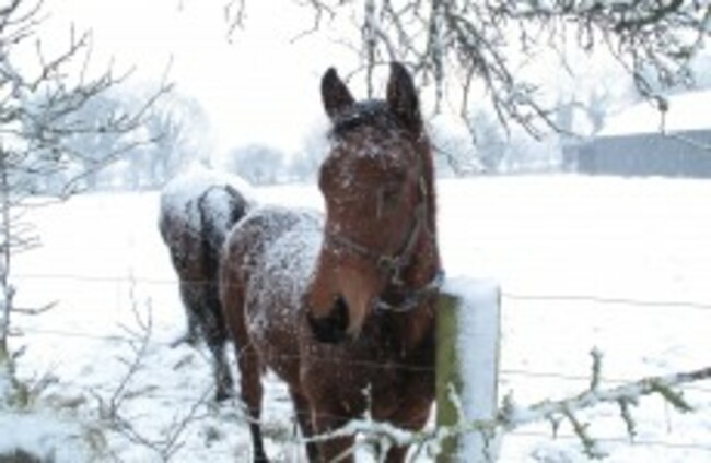 A young horse shelters from the snow in the Curragh in 2009. Eamonn Farrell/Photocall Ireland