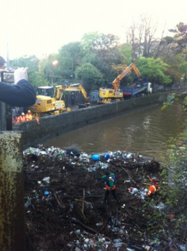 Debris certainly counted for something on the Dodder though – this massive dam had to be removed by machines after it swept up against the bridge near Lansdowne and continued to strangle the flow of water through the bridge arches. (Image thanks to Frank Gallen):