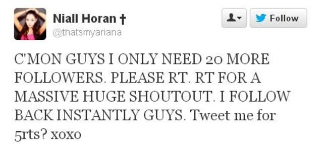 5. Constantly  requesting people tweet back at you or RT is a bit desperate, love.