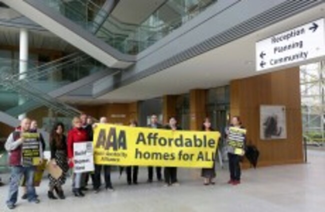 Families who face homelessness or who are in emergency homeless accommodation protest at Fingal County Council offices in Blanchardstown this afternoon. Laura Hutton/Photocall Ireland